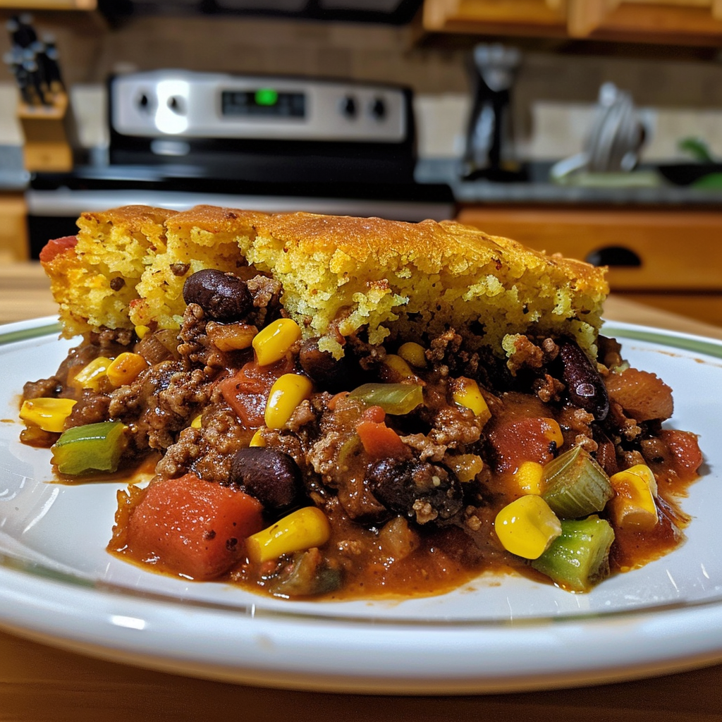 - With layers of savory chili and fluffy cornbread, this dish warms your heart and home