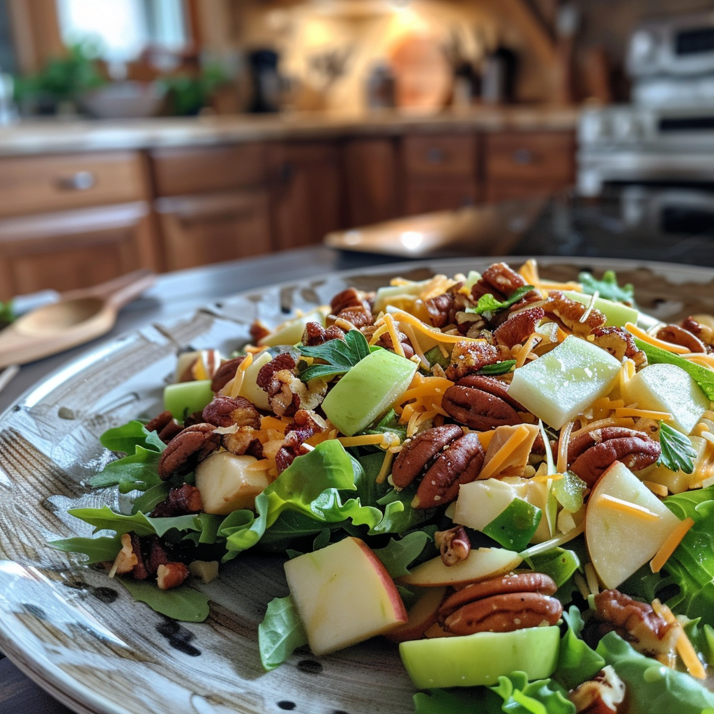 When you think of a salad, do images of sad lettuce leaves and tasteless tomatoes come to mind? Well, prepare for your salad world to be flipped upside down. This Delicious Apple, Cheddar, and Pecan Salad Recipe is a vibrant dance of flavors that will make you rethink everything you thought you knew about salads. Imagine crisp apple slices, sharp cheddar cheese, and crunchy pecans tossed together in a delightful harmony that sings to your taste buds.