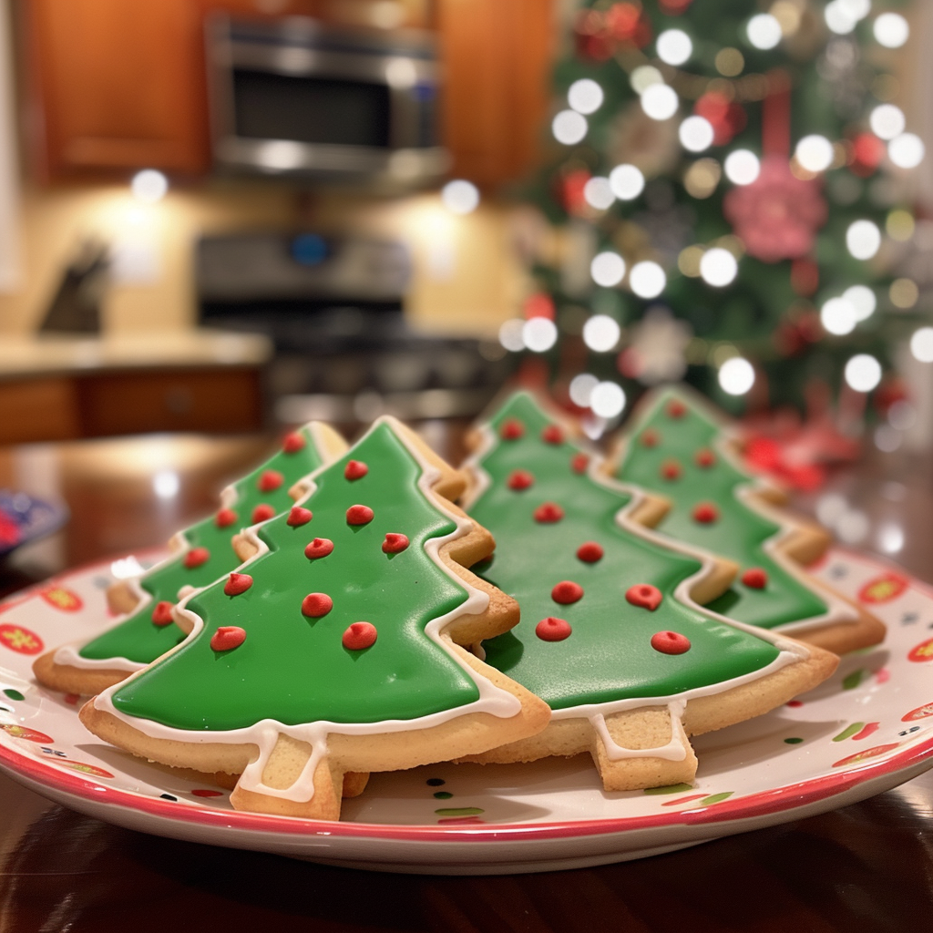 Shape Your Trees**: Once chilled, preheat your oven to 350°F (175°C). Roll out the dough on a floured surface until about 1/4 inch thick. Use tree-shaped cookie cutters for festive fun!