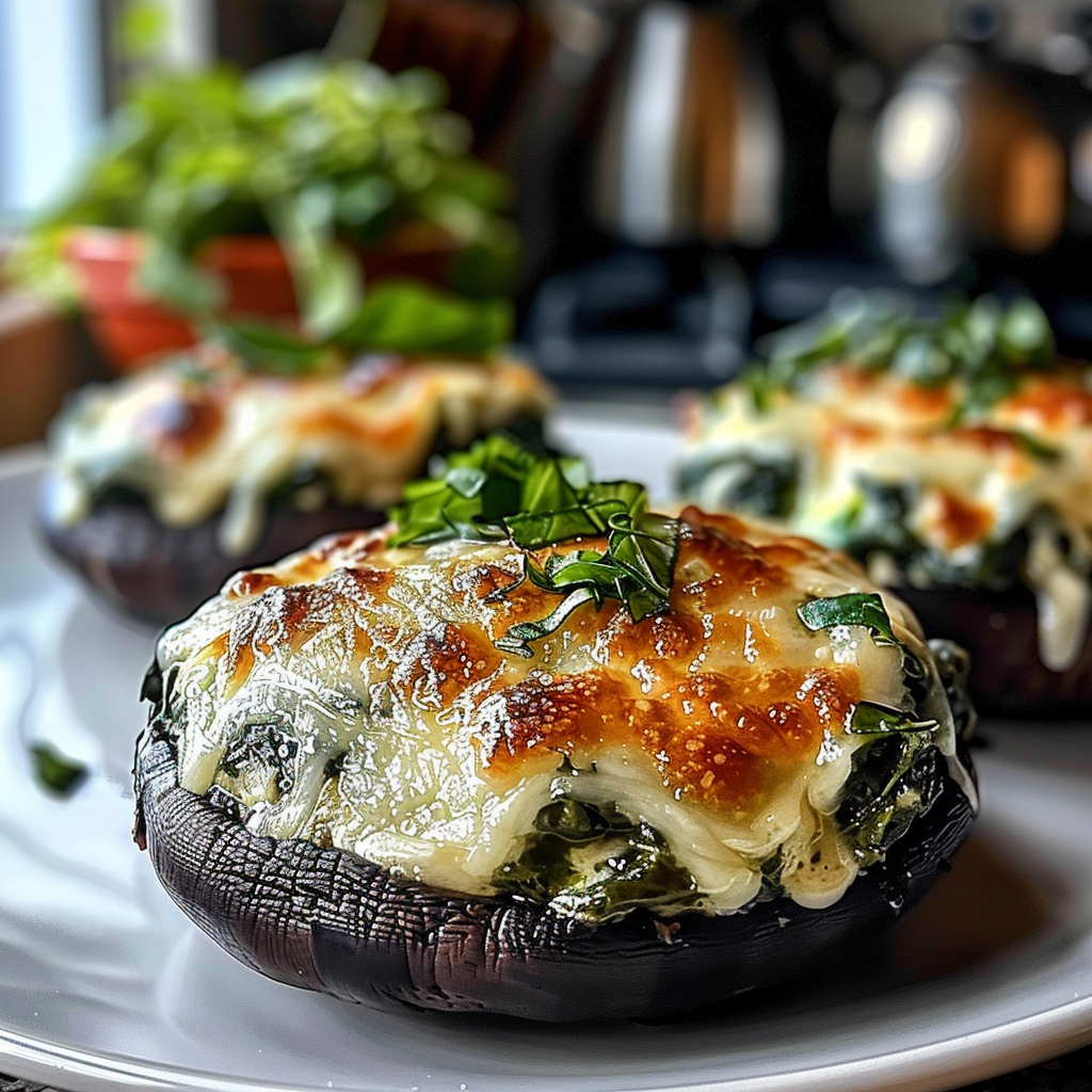 Start by preheating your oven to 375°F. Clean the portobello caps and remove the stems. Sauté the spinach and garlic, then mix in cheese before stuffing the mushrooms. Bake for 20-25 minutes until golden brown.