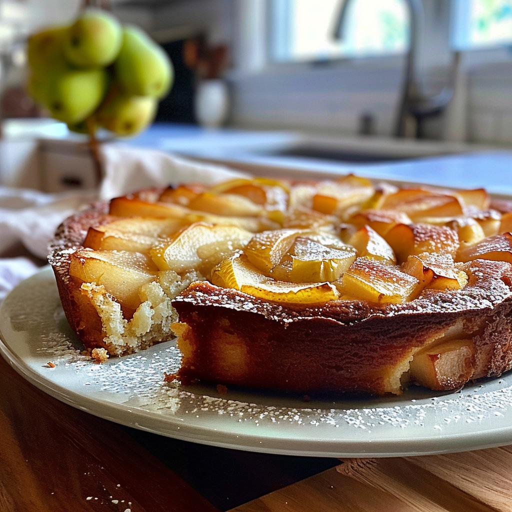 - Visually stunning with its golden crust and delicate pear slices, it’s sure to impress guests