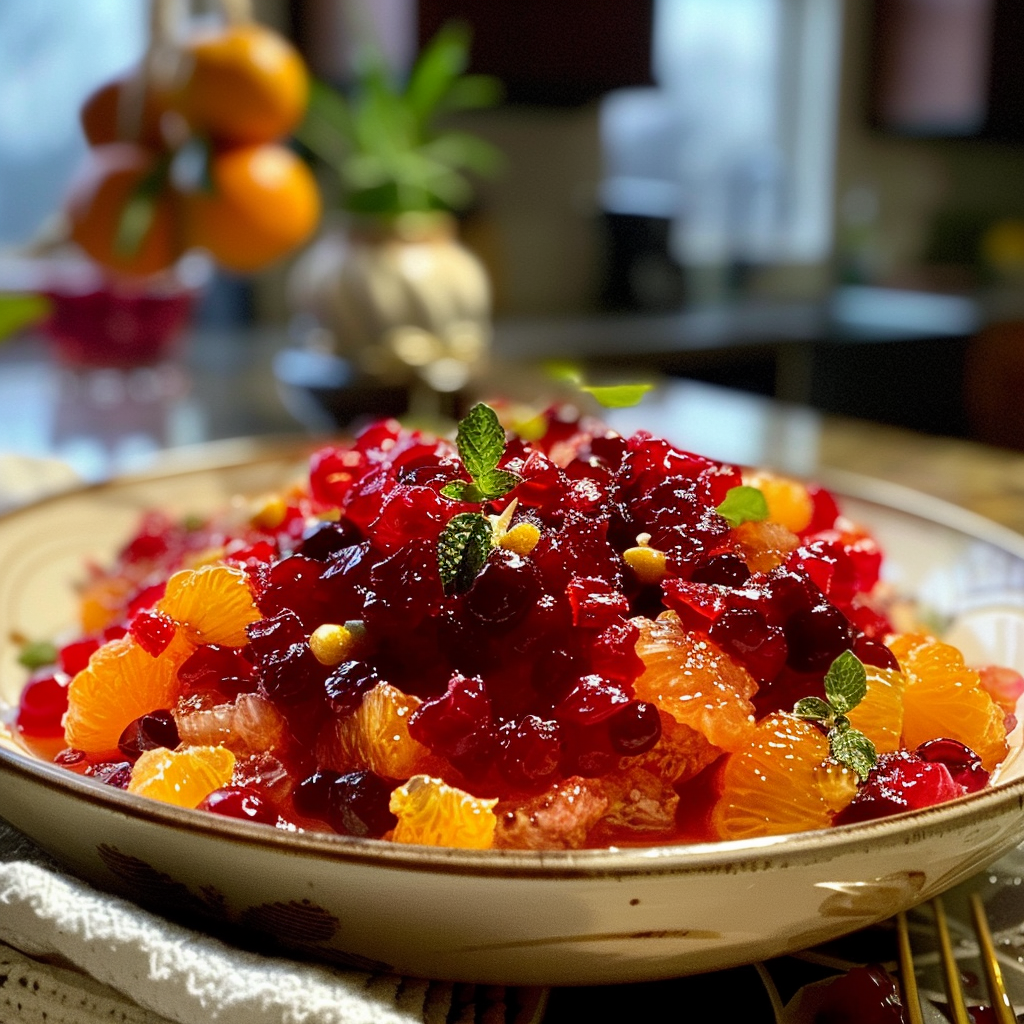 Elevate your holiday table with this vibrant zesty citrus and cranberry relish. Bursting with fresh oranges, tart cranberries, and a hint of ginger, this easy-to-make dish is a festive delight that adds a splash of color and flavor to any meal. Perfect alongside turkey or ham, it brings cheer to every gathering.